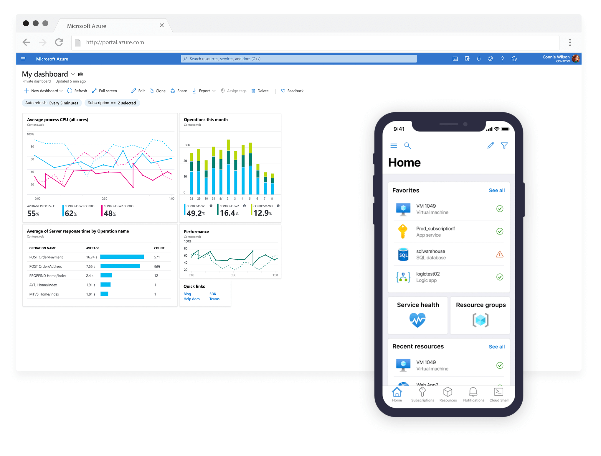 Imagine a single easy-to-use console built just for you, your team, and your projects. This unified hub significantly simplifies building, deploying, and managing your cloud resources. Organize your portal to custom-fit your work and your work style. Stay on top of the things that matter most by pinning them to your dashboard. Resize tiles to show just the right amount of detail, and share insights across apps and resources.