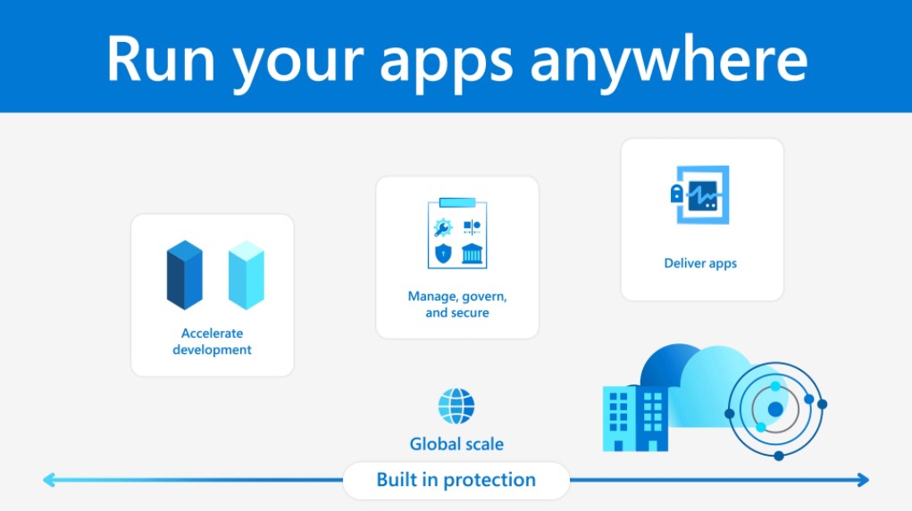 - Accelerate development with Azure Arc and protect data, apps, and infrastructure with built-in, unified security tools.
