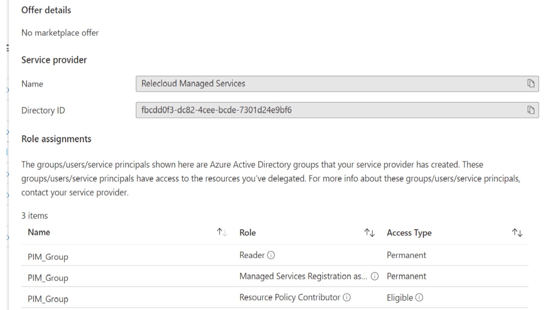 Provide time- and approval-based role activation to service providers with Privileged Identity Management* (PIM), a service of Azure Active Directory (Azure AD). For jobs that fall outside the parameters of RBAC roles built in to Azure, PIM further mitigates risk by assigning providers the exact level of access needed, per resource, for the exact amount of time needed to complete a task. Customers also benefit from added security by requiring Azure Multi-Factor Authentication before a provider's access is elevated.