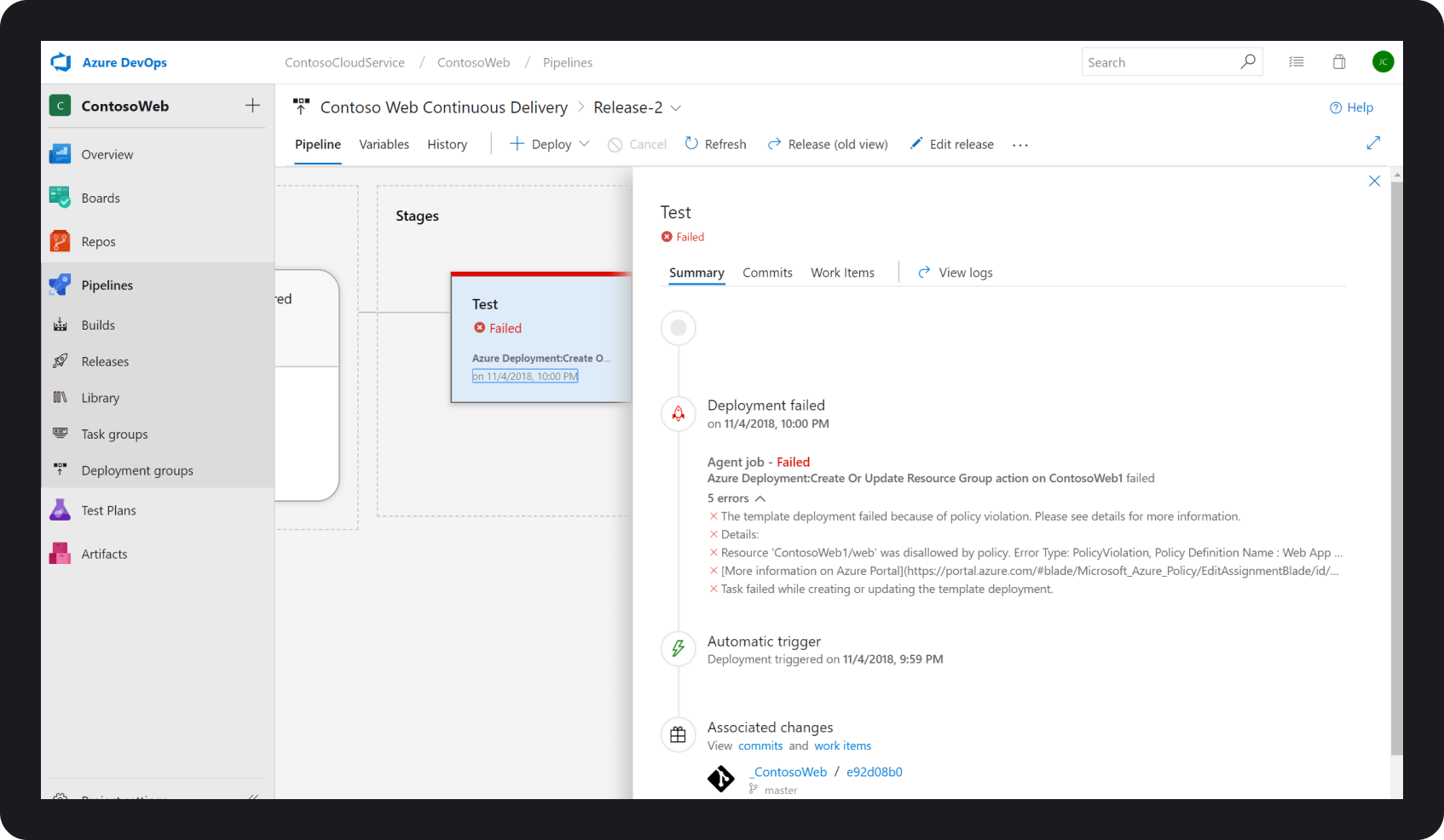 Take advantage of the native integration with GitHub and Azure DevOps to manage policies-as-code and surface policy compliance assessments in deployment workflows. Give developers more agility while reducing the number of approval processes when releasing a build, and explain the reasons for non-compliance.