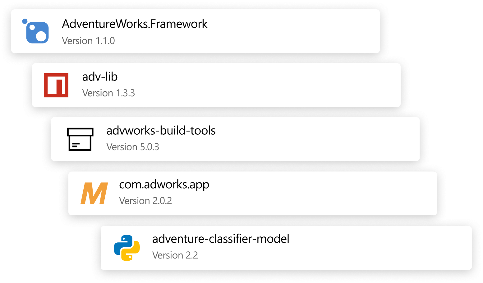 Share Maven, npm, NuGet, and Python packages from public and private sources with your entire team. Integrate package sharing into your CI/CD pipelines in a way that’s simple and scalable.