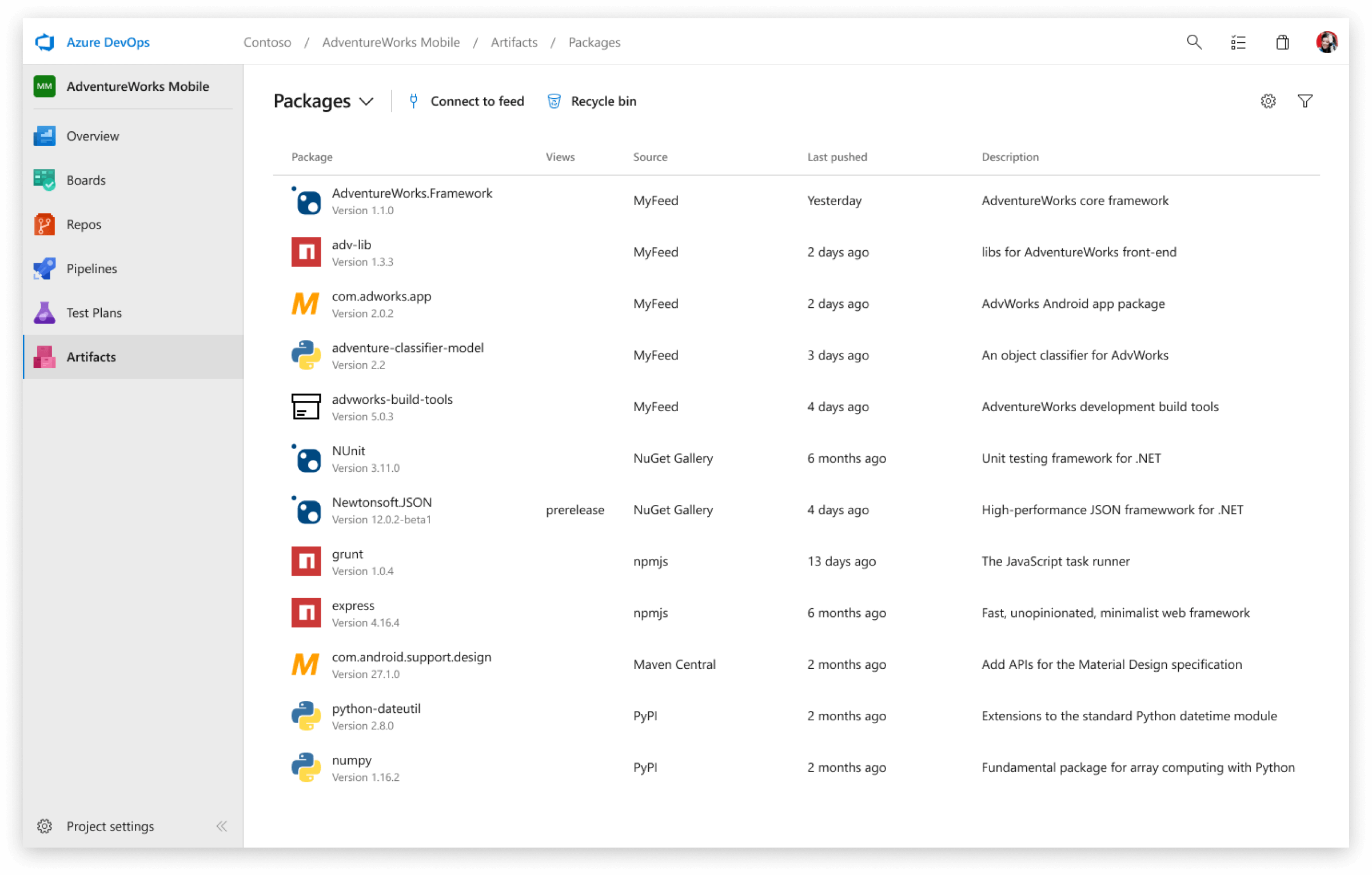 Create and share Maven, npm, NuGet, and Python package feeds from public and private sources