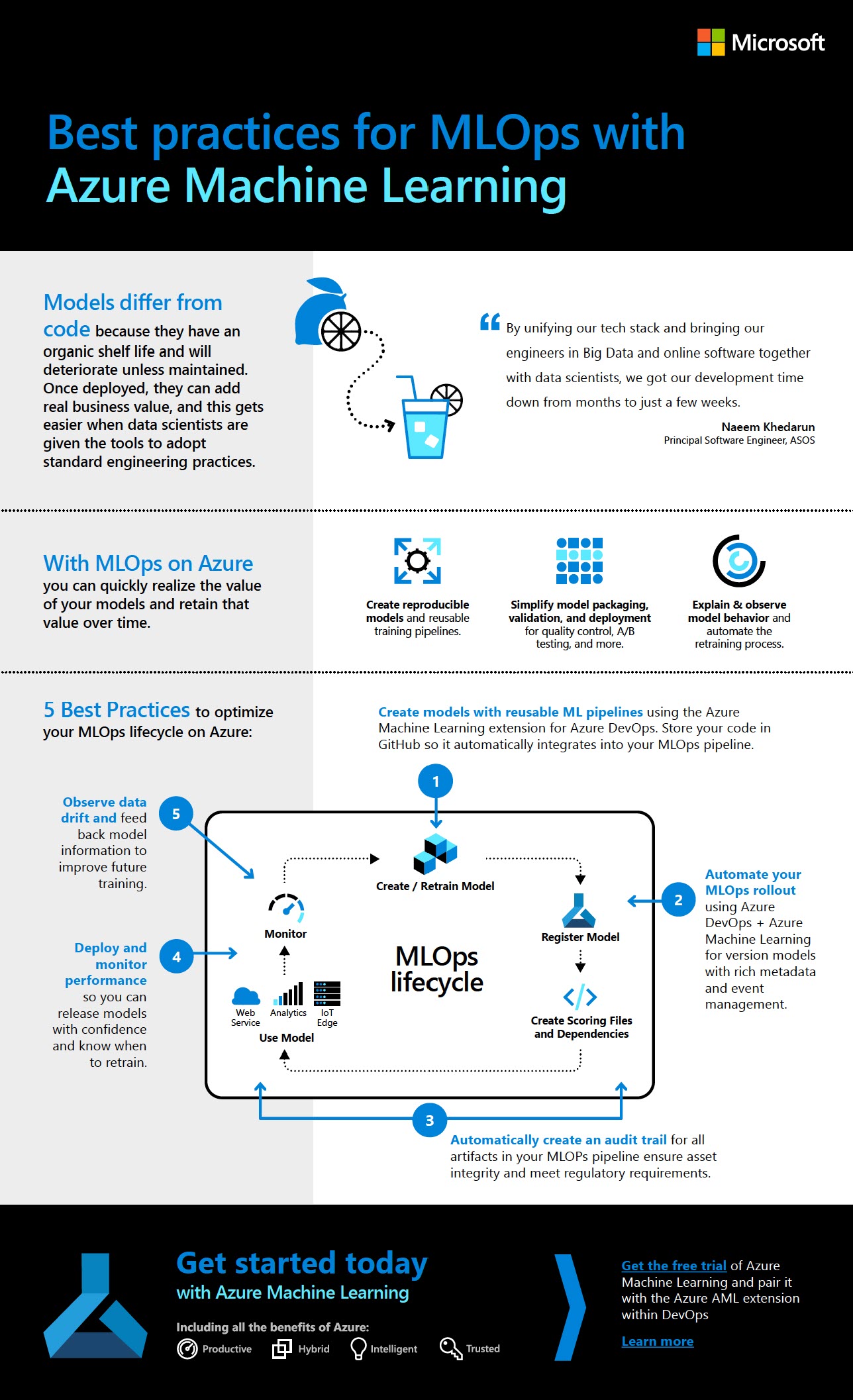 Michael Cleavinger, Senior Director of Shopper Insights, Data Science, and Advanced Analytics, PepsiCo"We've used the MLOps capabilities in Azure Machine Learning to simplify the whole machine learning process. That allows us to focus more on data science and let Azure Machine Learning take care of end-to-end operationalization."