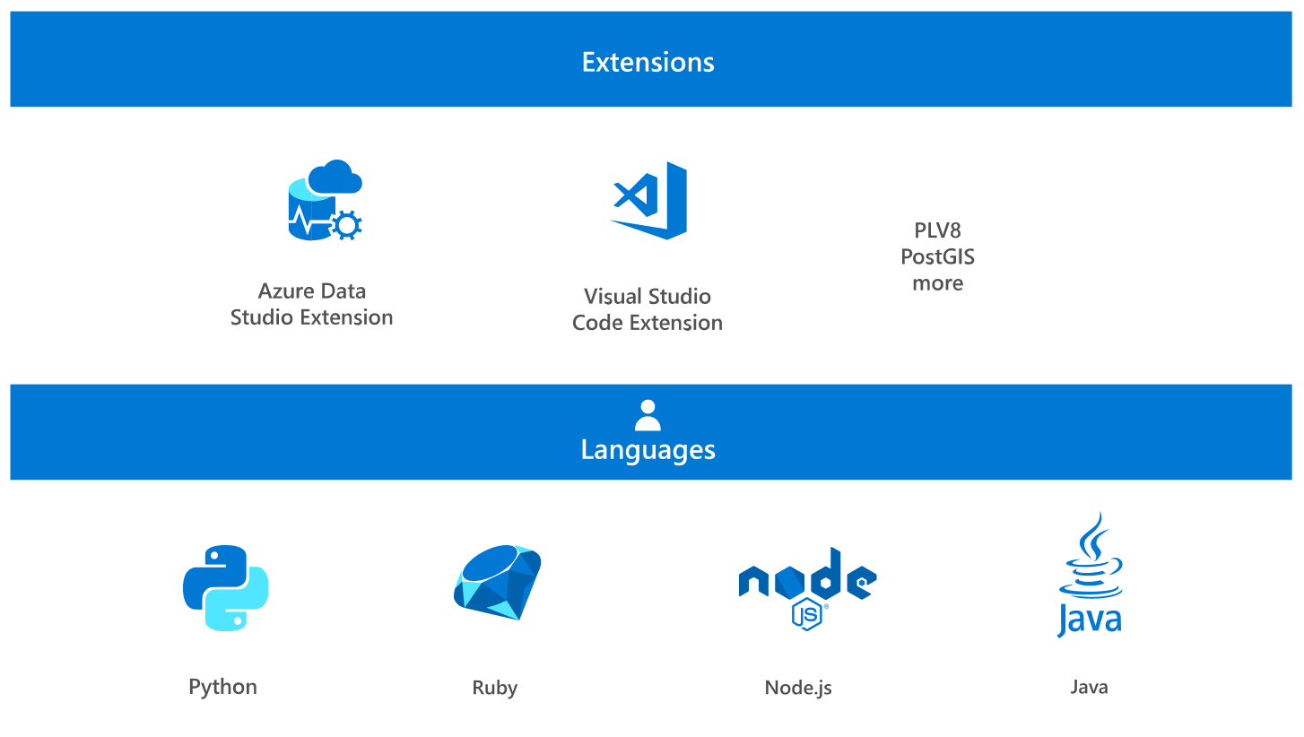 Migrate with ease using a fully managed PostgreSQL database with support for the latest versions. Build with your favorite PostgreSQL extensions such as Cron, PostGIS, and PLV8, and popular frameworks and languages like Ruby on Rails, Python with Django, Java with Spring Boot, and Node.js. Take advantage of Microsoft open-source database resources, including GitHub and the PostgreSQL extension (preview) for Azure Data Studio.
