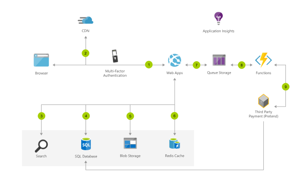 The e-commerce website includes simple order processing workflows with the help of Azure services. Using Azure Functions and Web Apps, developers can focus on building personalized experiences and let Azure take care of the infrastructure.