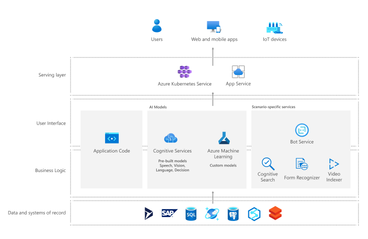 Infuse AI into both the user interface and business logic application layers to enhance user experiences and deepen business insights. Engage audiences globally by adding translation, chatbots, and voice for AI-enabled user interfaces. Enhance business logic with AI for scenarios like search, personalization, document processing, image analytics, anomaly detection, and speech analytics.