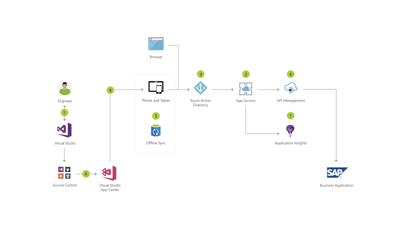 Build a robust and responsive app that enables field engineers to view and edit the jobs assigned to them offline. A highly available API backend supports both mobile and web clients.