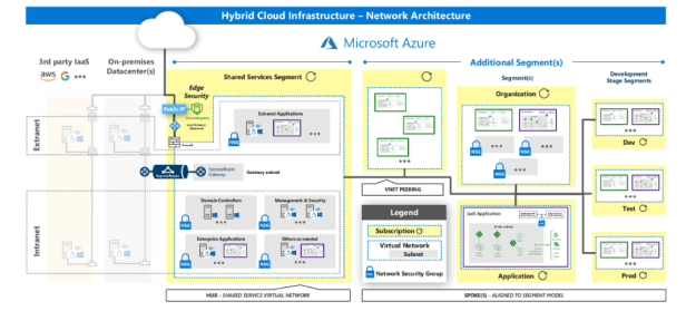 Explore the best way to implement a secure hybrid network footprint using Azure tools.