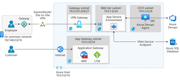 Use Azure Application Gateway and Azure Web Application Firewall to restrict application access from the internet.